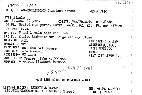 Main Line Board of Realtors listings 1949-90