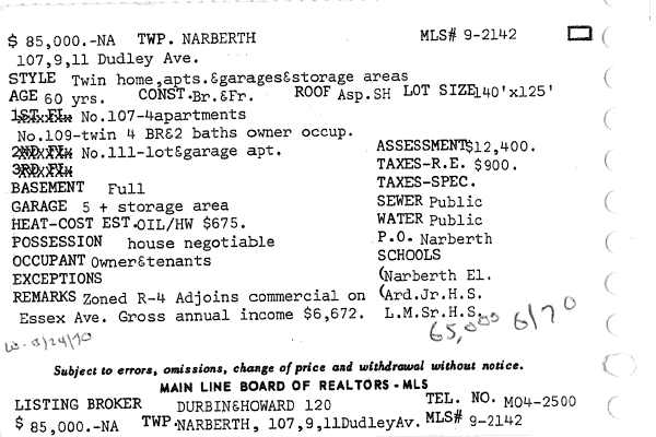 Main Line Board of Realtors listings 1949-90