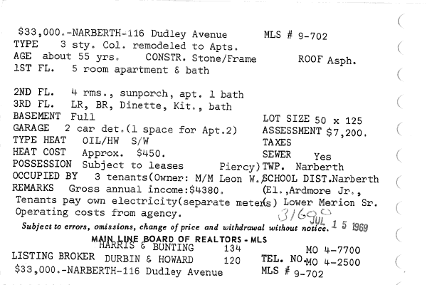 | 1908 | Built by (source: Atlas of Properties on Main Line Pennsylvania Railroad, A. H. Mueller, 1908) |