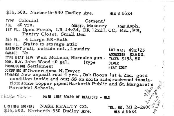 Main Line Board of Realtors listings 1949-90