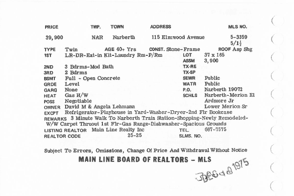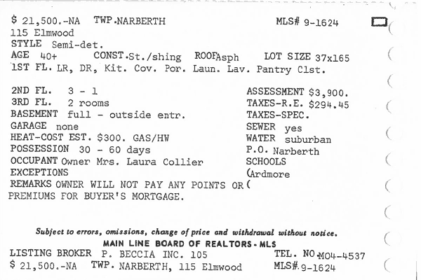 Main Line Board of Realtors listings 1949-90