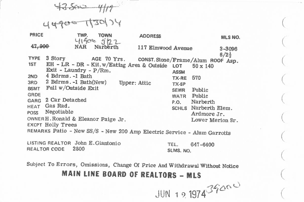 Main Line Board of Realtors listings 1949-90