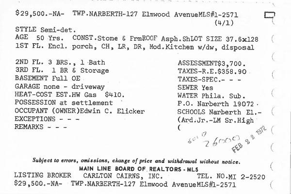 | 1908 | Built by (source: Atlas of Properties on Main Line Pennsylvania Railroad, A. H. Mueller, 1908) |