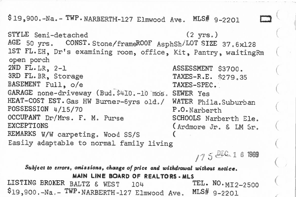 | 1940 | Munroe F Purse | Head | 30 | Rent | White | Married | Pennsylvania | Private practice | Osteopathic physician | ||
