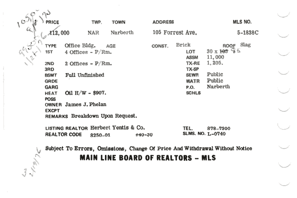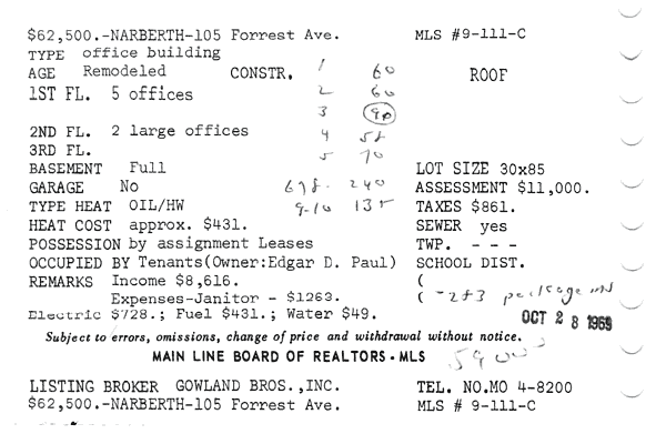 | 1908 | Built by (source: Atlas of Properties on Main Line Pennsylvania Railroad, A. H. Mueller, 1908) |