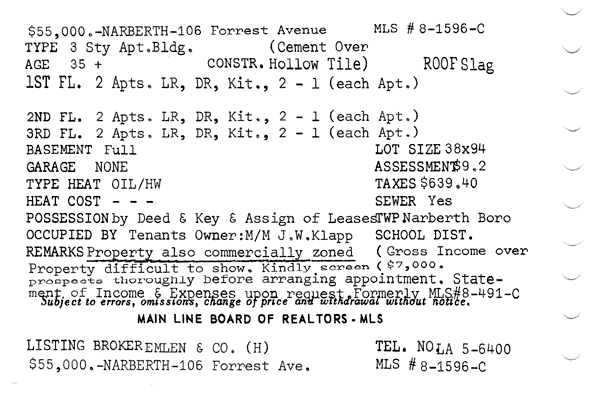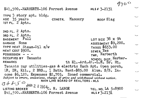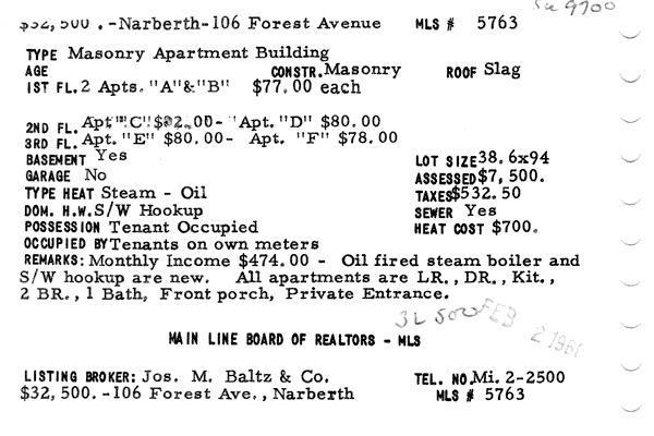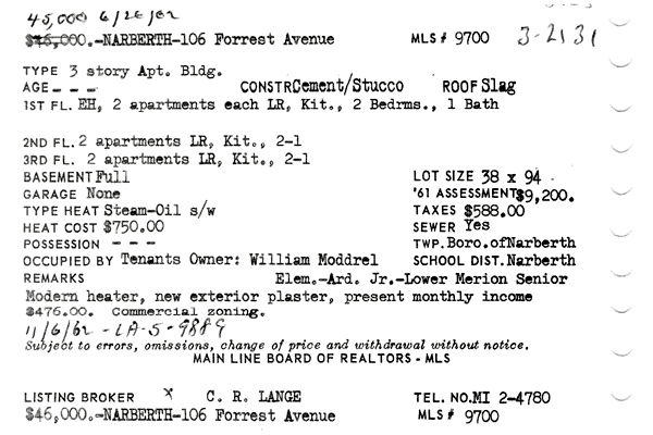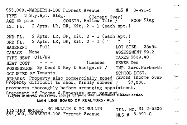 Main Line Board of Realtors listings 1949-90