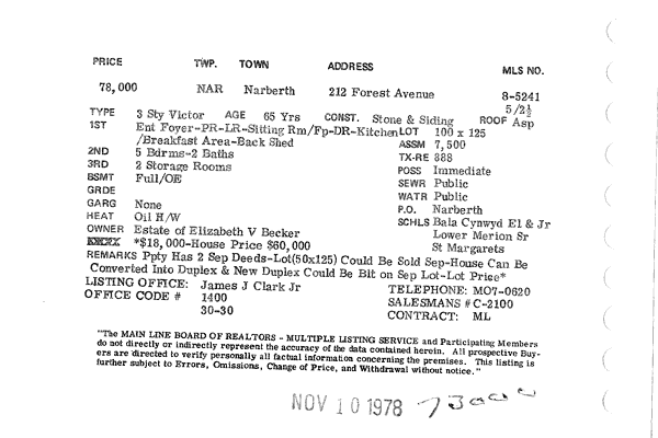 This deed likely describes this property, but may not be confirmed. This is not intended as a complete list. Source: Montgomery County, Pa. Recorder of Deeds.