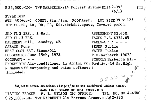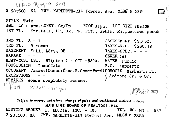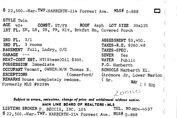 | 1908 | Built by (source: Atlas of Properties on Main Line Pennsylvania Railroad, A. H. Mueller, 1908) |