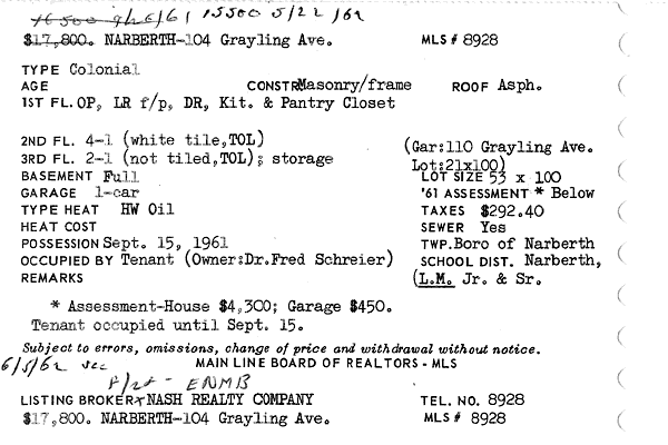 Main Line Board of Realtors listings 1949-90