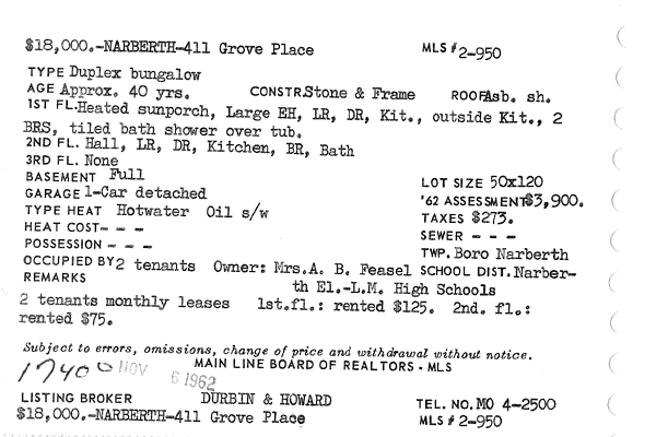 | 1926 | Built by (source: Atlas of Properties on Main Line Pennsylvania Railroad, G.W. Bromley & Co., 1926) |