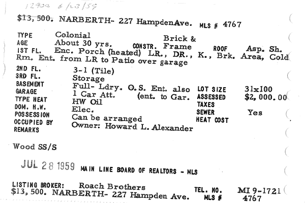 Main Line Board of Realtors listings 1949-90