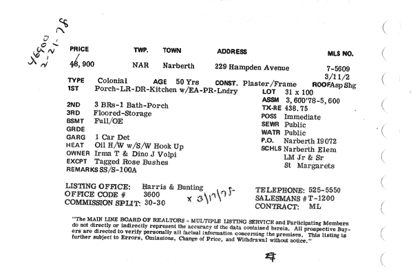 Main Line Board of Realtors listings 1949-90