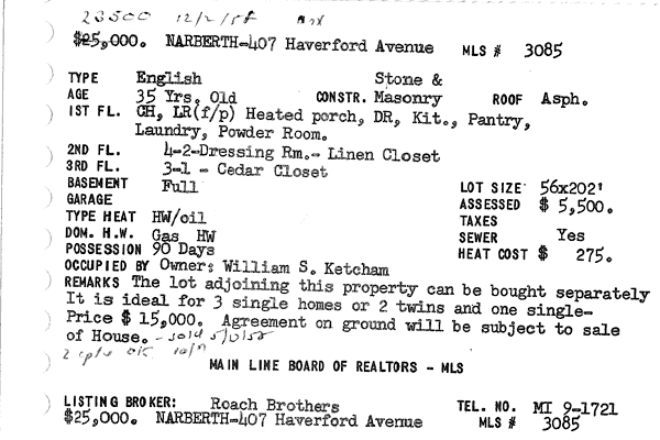 Main Line Board of Realtors listings 1949-90