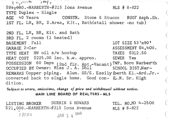 Main Line Board of Realtors listings 1949-90