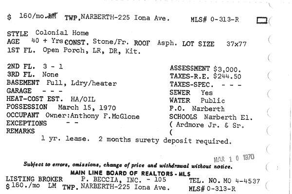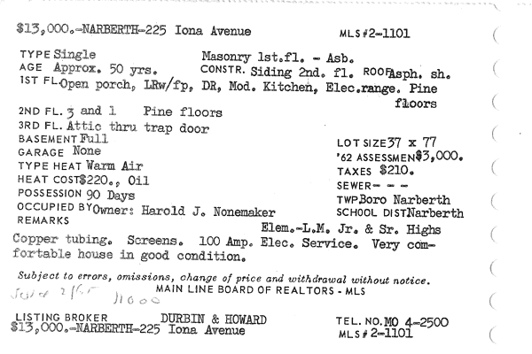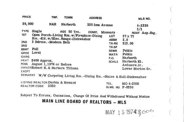 | 1913 | Built by (source: Atlas of Properties on Main Line Pennsylvania Railroad, A. H. Mueller, 1913) |