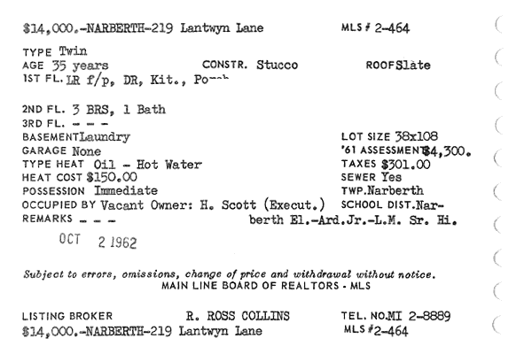 | 1940 | Walter J Scott | Head | 48 | Own | White | Married | Pennsylvania | Oil Burners | Salesman | ||