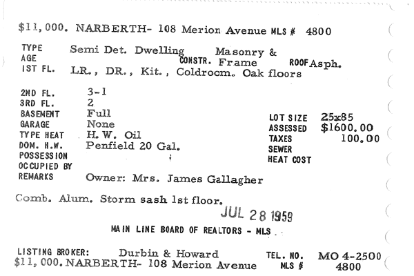Main Line Board of Realtors listings 1949-90