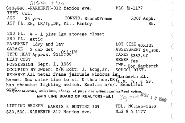 | 1926 | Built by (source: Atlas of Properties on Main Line Pennsylvania Railroad, G.W. Bromley & Co., 1926) |