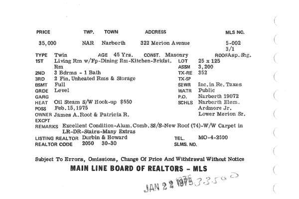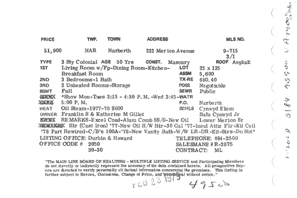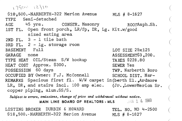 | 1908 | Built by (source: Atlas of Properties on Main Line Pennsylvania Railroad, A. H. Mueller, 1908) |