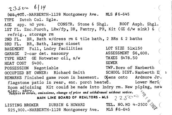 | 1927 | Address changed from 624 Montgomery Ave. |