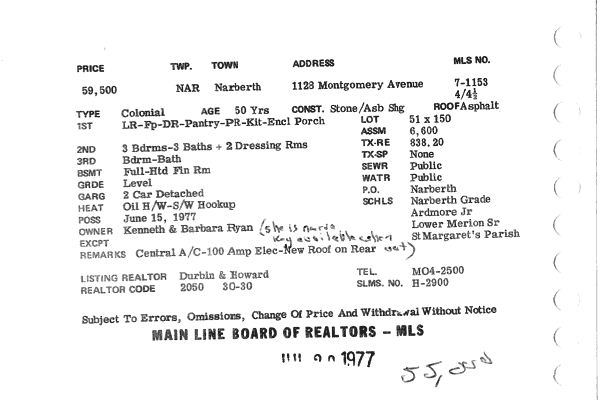 | 1913 | Built by (source: Atlas of Properties on Main Line Pennsylvania Railroad, A. H. Mueller, 1913) |
