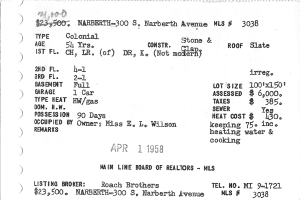 Main Line Board of Realtors listings 1949-90