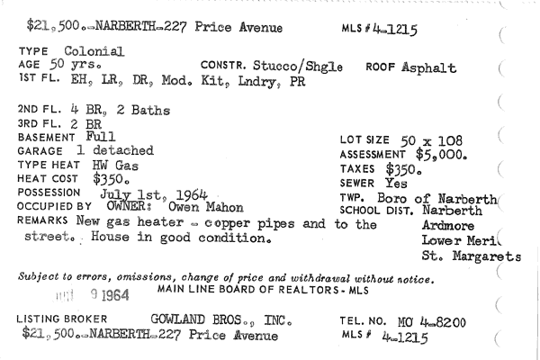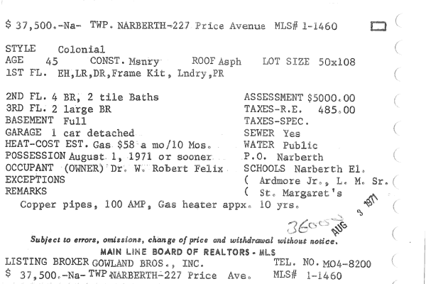 | 1900 | Built by (source: Atlas of Properties Along the Pennsylvania R.R., J. L. Smith, 1900) |