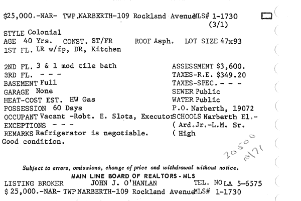 Main Line Board of Realtors listings 1949-90