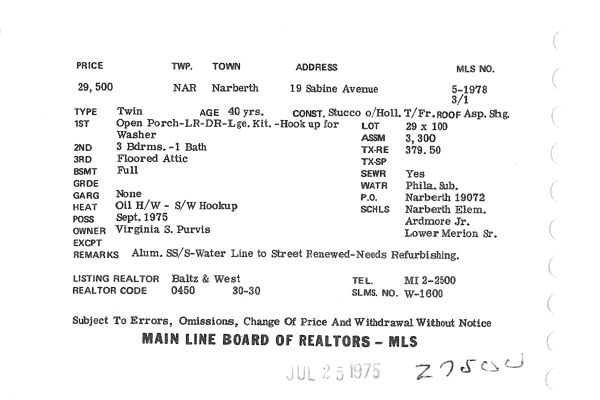 Main Line Board of Realtors listings 1949-90