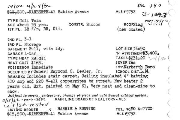 | 1926 | Built by (source: Atlas of Properties on Main Line Pennsylvania Railroad, G.W. Bromley & Co., 1926) |