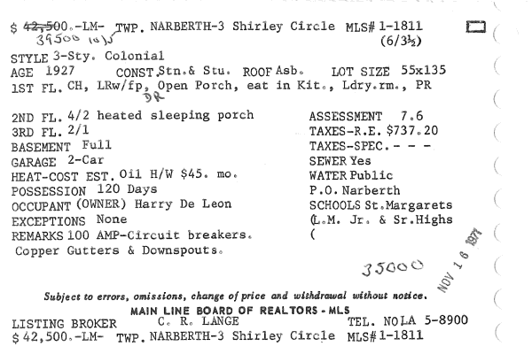 Main Line Board of Realtors listings 1949-90