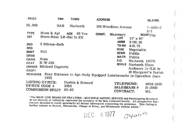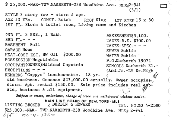 | 1913 | Built by (source: Atlas of Properties on Main Line Pennsylvania Railroad, A. H. Mueller, 1913) |