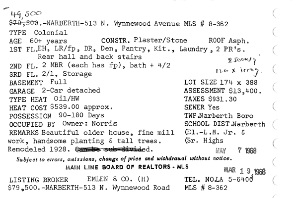 | 1970 | Address changed from 513 N. Wynnewood Ave. |