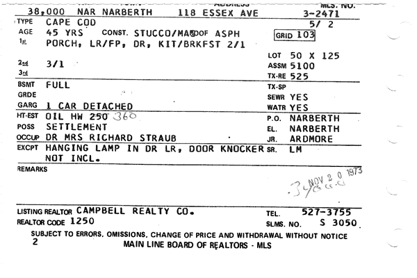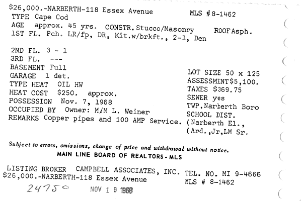 Main Line Board of Realtors listings 1949-90