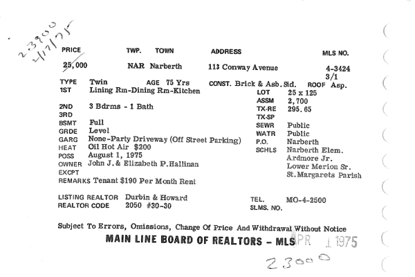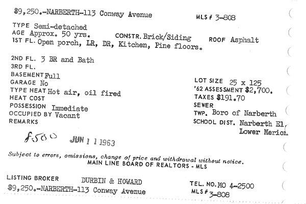 | 1900 | Built by (source: Atlas of Properties Along the Pennsylvania R.R., J. L. Smith, 1900) |