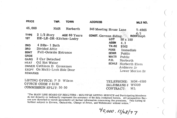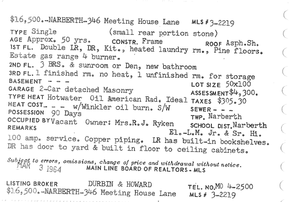 | 1896 | Built by (source: Atlas of Lower Merion, A. H. Mueller, 1896) |