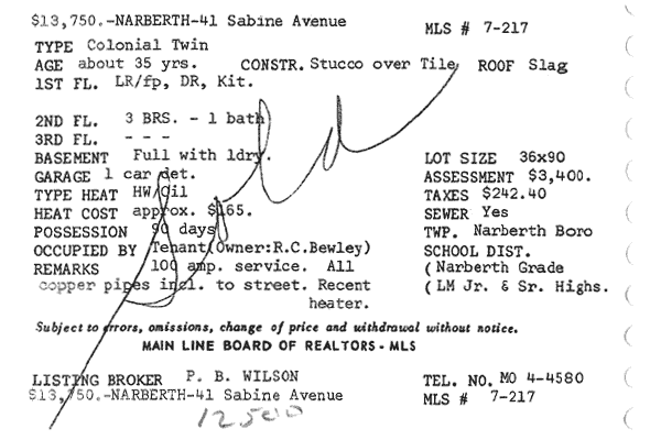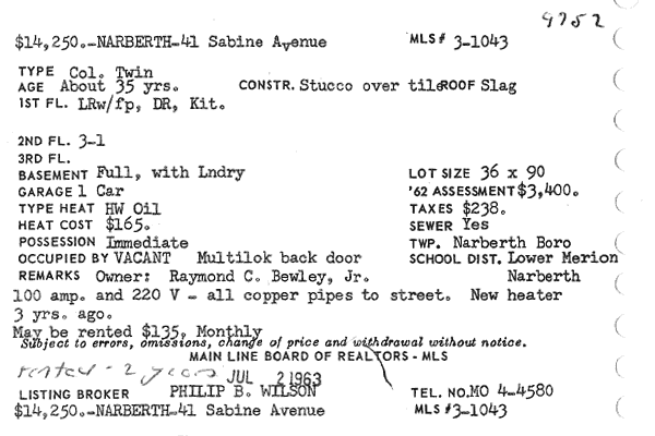 | 1926 | Built by (source: Atlas of Properties on Main Line Pennsylvania Railroad, G.W. Bromley & Co., 1926) |